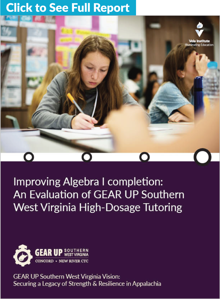 One of the required performance measures of GEAR UP is an increase in the number of students who pass Algebra I by the end of 9th grade. To identify and examine interventions to improve Algebra I completion and passing, GUSWV partnered with Vela to apply the EBPS framework to guide improvements in Algebra I course-taking and completion and evaluate the GUSWV Algebra I performance measure.