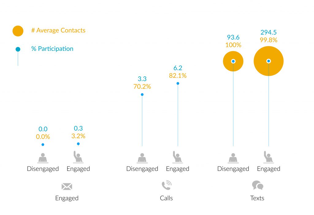 Insight: While both Engaged Students and Disengaged Students preferred texting, Engaged Students were in more frequent contact with SSA